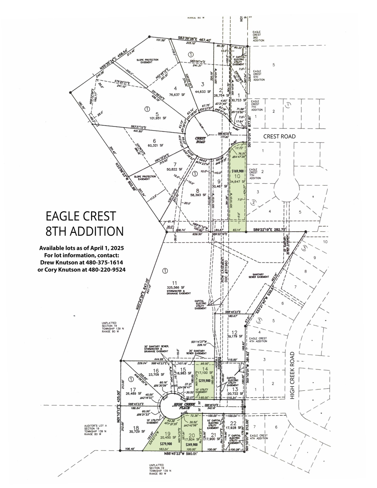 Contact Drew or Cory for lots in Eagle Crest 8th Additions – 701-258-3464.